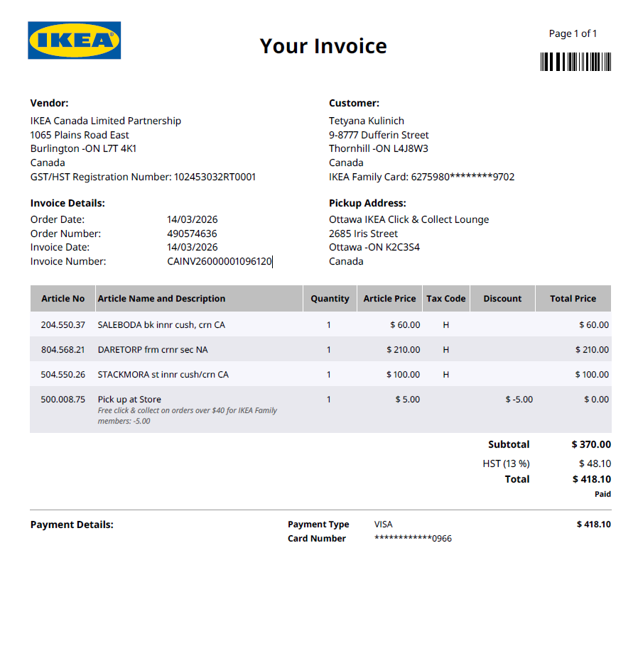 This is Ottawa Click & collect Lounge. All 3 items has package.