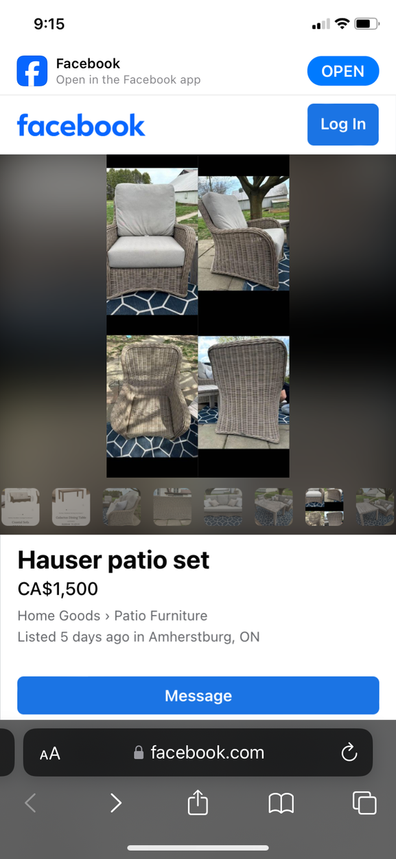 All outside wicker furniture 1 love seat 2 chairs 1 coffee table and a small rectangular fire pit