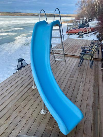 Aluminum ladder can be removed from slide for easy transport.