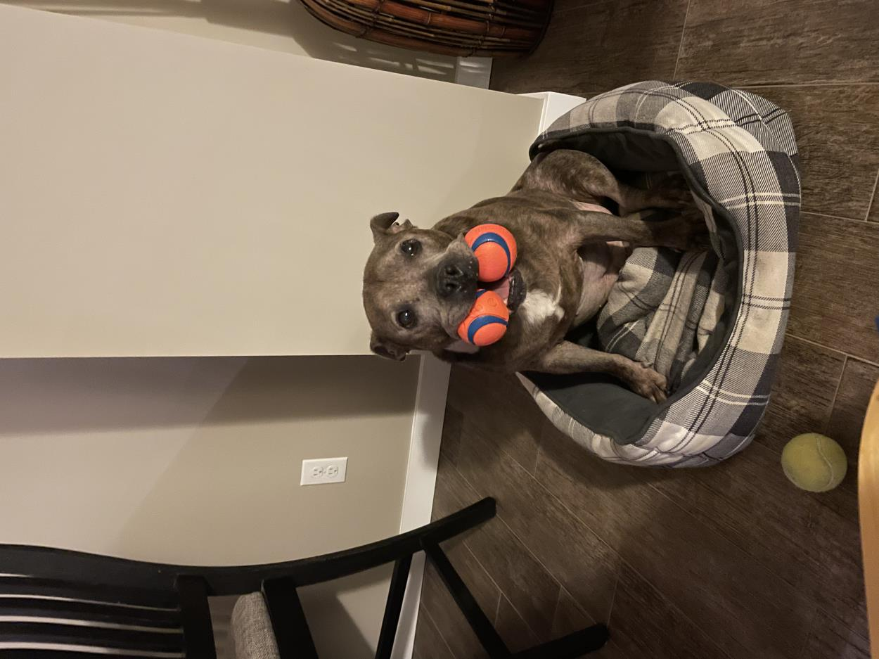 She wears her harness with a seatbelt; however, I can look into getting her a crate, if preferred. I can supply all the food and resources she'll need for the commute. I am also willing to join if able, so I can ensure she is comfortable. However, I also trust the process and can meet at both destination points if that is desired.