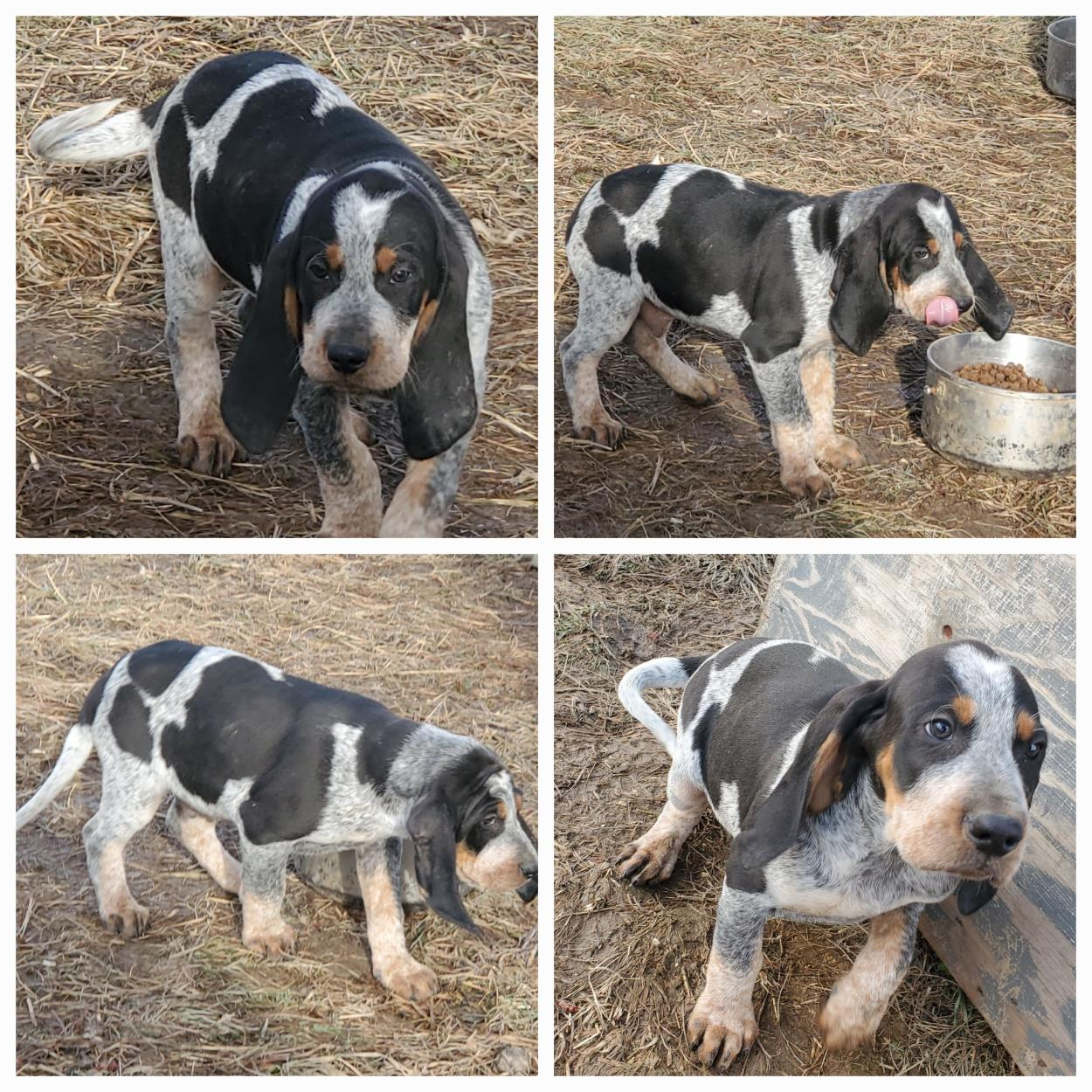 Very chill BLUETICK COONHOUND pup. Uship doesn't offer Bluetick as a breed option. He'll happily travel in his crate. A stop to go pee would be necessary if he starts to fuss. If you stop for a break that's a good time to take the puppy out. While the vehicle is moving he'll just sleep. No feeding required unless there's a delay enroute.