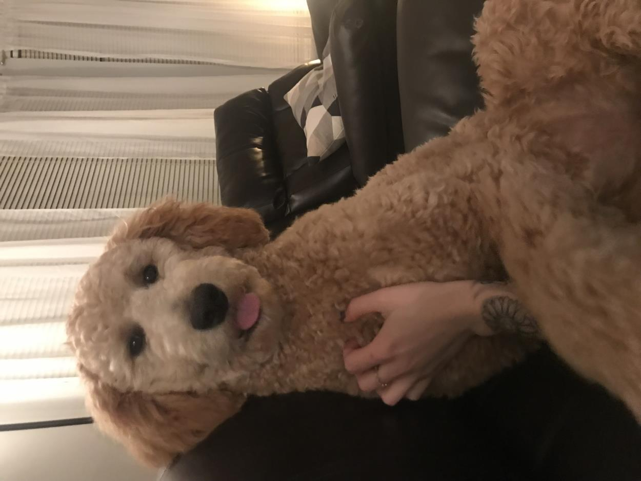 Lily is a very sweet 9 month old Goldendoodle. For a puppy, she is very calm and a bit timid at first. With some encouragement and pets, she easily connects with new people. She enjoys car rides and I've been taking her with me more to get used to the experience.