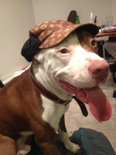He has a proper crate, and his belongings. Bowls, toys leash etc. He is friendly.