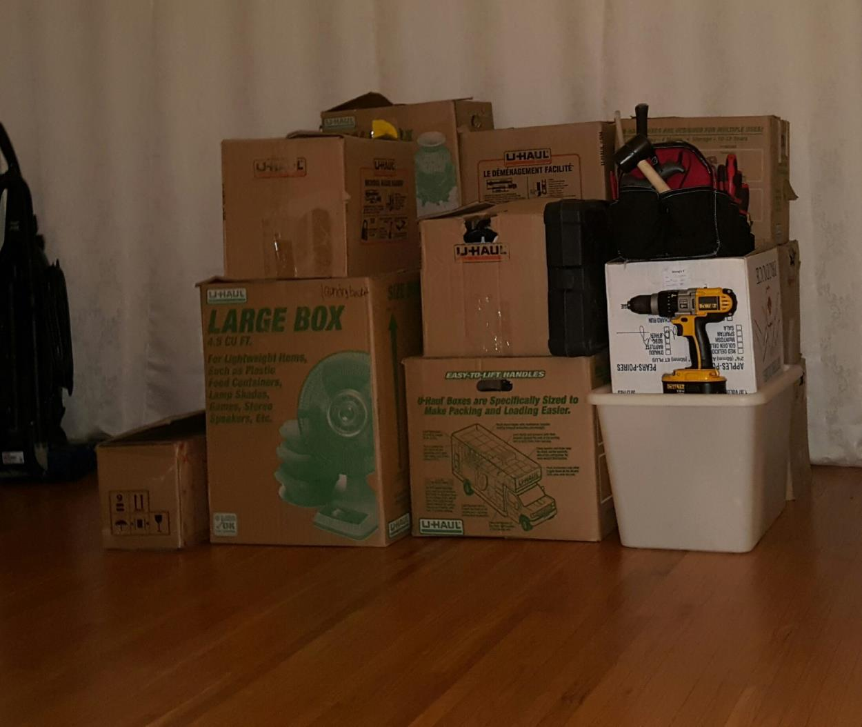 Will add: my small TV, guitar, a few more garbage bags of non-breakables, and some suitcases. I am moving to Calgary to start a new job and will find my apartment within the next week!