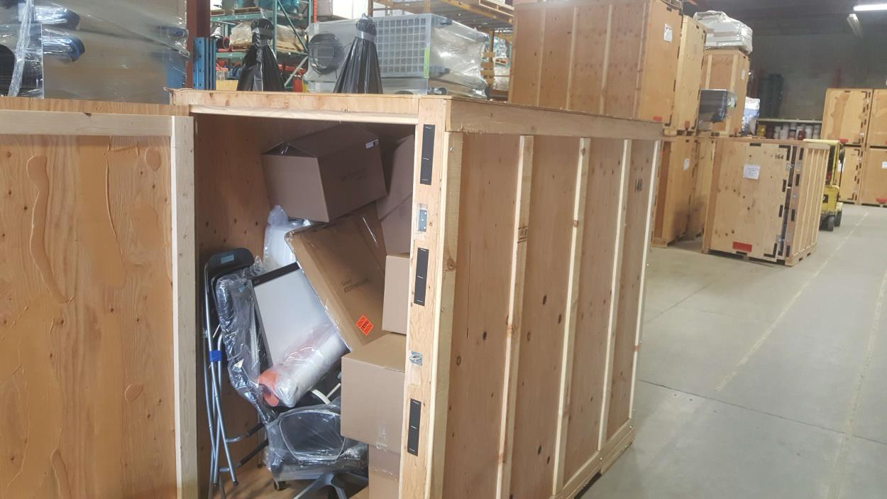 The Edmonton address is the storage facility of Service Master. They have a loading bay and moving/shipping supplies. The crates themselves belong to Service Master and will not be moved.