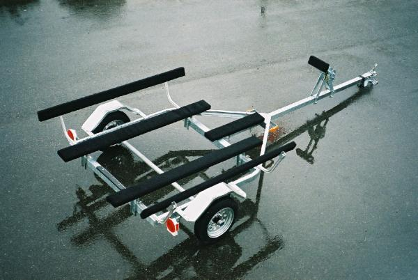 there's no trailer, but since it's a flatboat, it fits on a towing or flatbed.