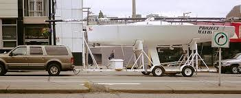 30' foot boat on custom double axle trailer. Mast tied on top of boat approx. 45' long. Boat will be professionally packed, tied down and ready to go. Trailer is totally re-build with new tires, bearings, surge brakes, lights... Plated and insured.