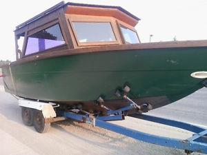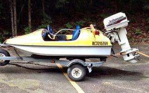 Trailer hitch ball is 2 " a small econobox could pull this shipment as hull and trailer way only 400 lbs. email with any questions .