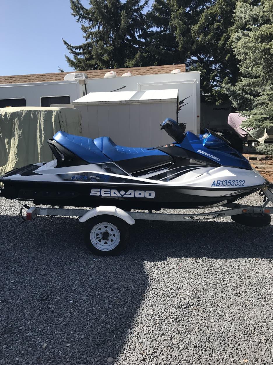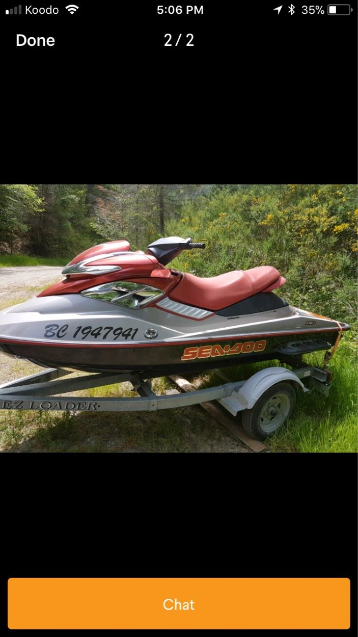 Sale is now complete and will be ready for pickup after May 4th. Seadoo is on the seadoo trailer. Est size of the trailer is 15 feet long by 5 1/2 feet wide. Approximate weight is 850 lbs for the seadoo and 250 lbs for the trailer = 100 lbs or 500 kgs. There will also be an extra seat (same as seat in picture) to be brought too. It will be wrapped in plastic. This will be about 25 lbs maximum.
