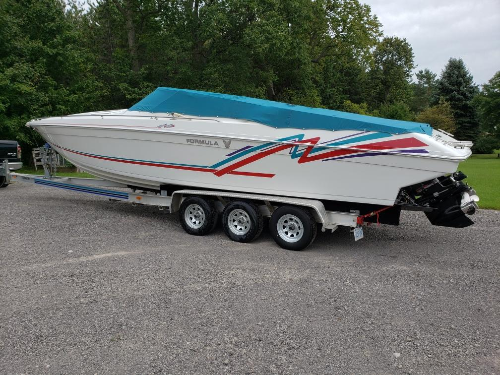 I would prefer this to be shipped on a flatbed but I don’t see a lot of quotes coming in below my price range so I’m back to tow away quotes. The tri axle trailer is in excellent shape but does not have a spare yet.boat is wrapped and ready to go at bridge yachts in port Dover Ontario.