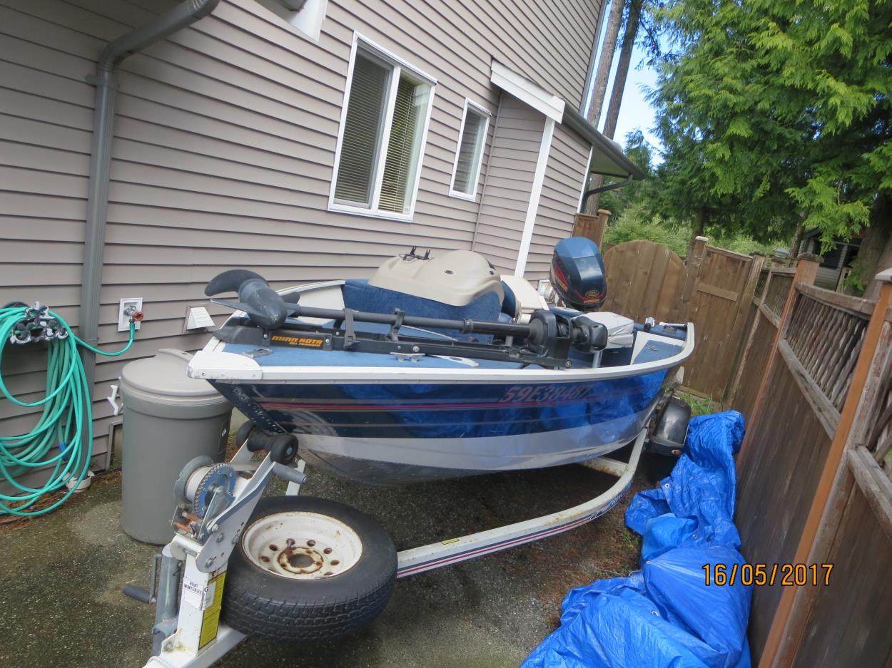 Boat will have a cover and will be full of sporting equipment (fishing rods, wakeboard equipment, etc.