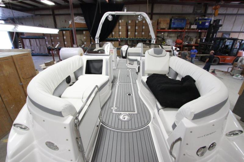 The boat is brand new. It will be shrink wrapped on a tandem axle trailer. The 11' height is the boat on the trailer with the tower folded down.