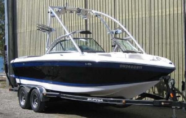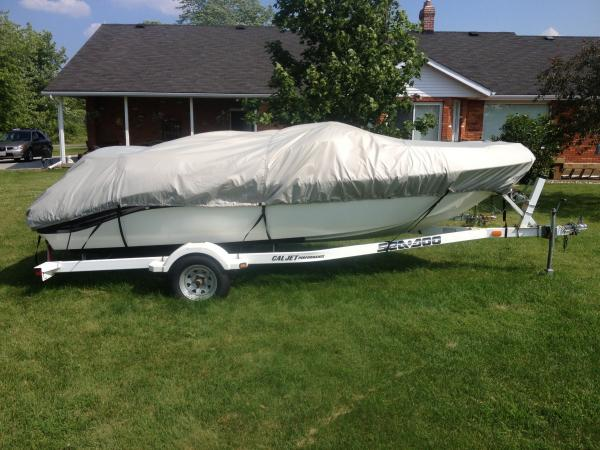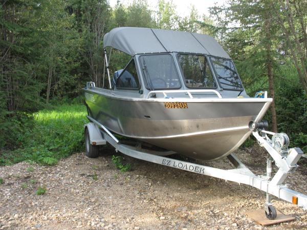 This is a brand new boat on a brand new trailer. Would prefer it to be trailered but of course if the price is fair pulling it on the trailer it comes with is an option. Has a spare tire included, boat will be covered/tarped and ready to go by May 10th at the latest (possibly May 1st). I have estimated the height at 8', but it could be a bit taller, it's the bimini top that makes up the height.