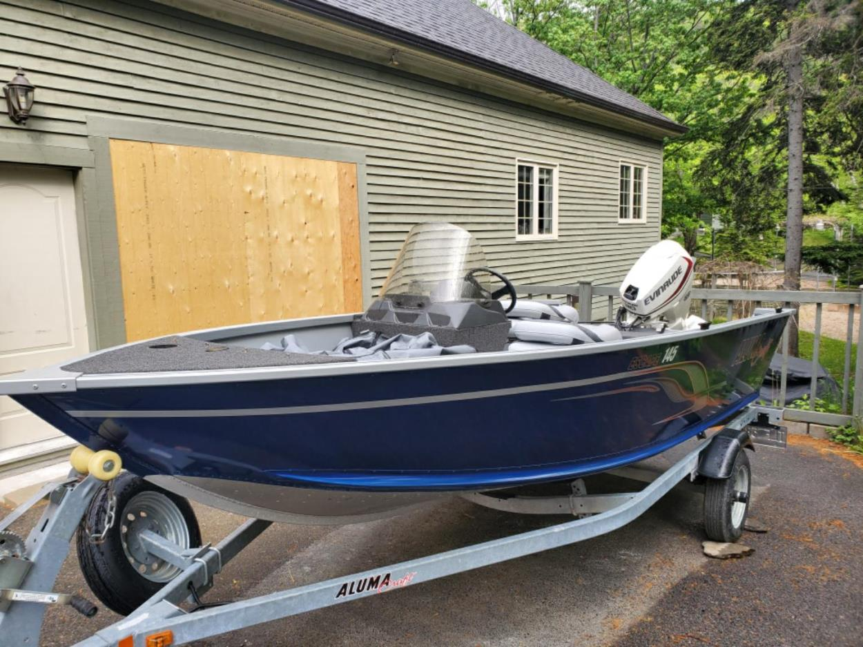 Boat motor is being inspected on June 16. We fully expect it to pass inspection and for the sale to go through. Pickup on the 19th may be possible. Weight quoted includes Boat, motor and trailer.