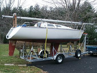 The boat is on jack stands in Kingsville. These would also need to be transported. I would meet the shipper in Toronto at Toronto Sailing and Canoe Club. The shipper must be able to transfer the boat from the stands to the trailer.