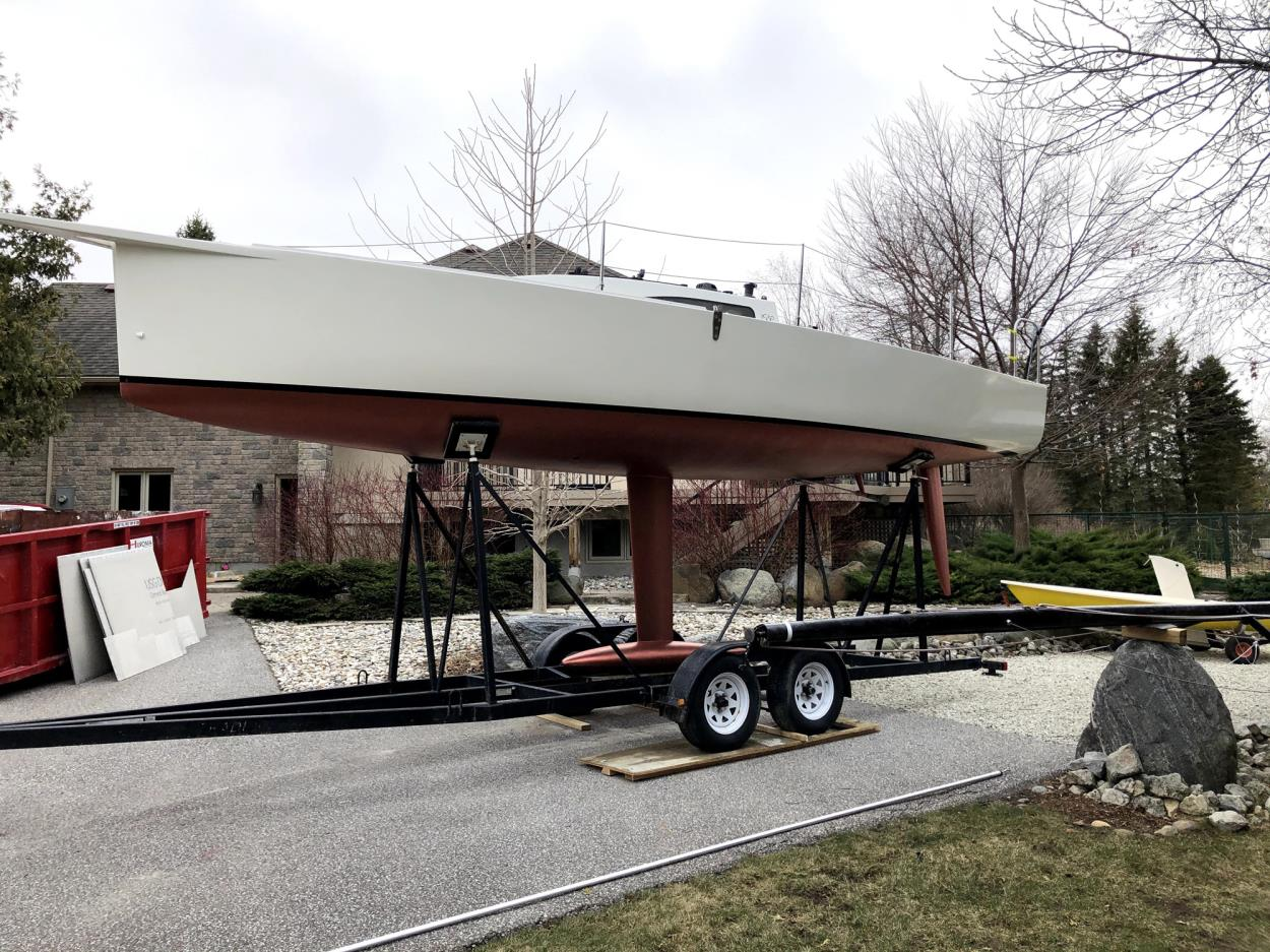 Shipment dates are flexible. Mast in photo lays flat on boat but is 30 feet long.
