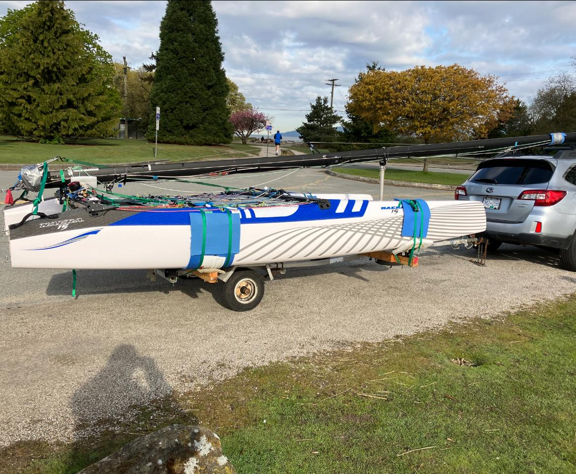 **edited listing: updated dates and pickup location provided** Boat is very light and the two 27 foot masts will be laying over top of the boat as seen in the provided photo.
