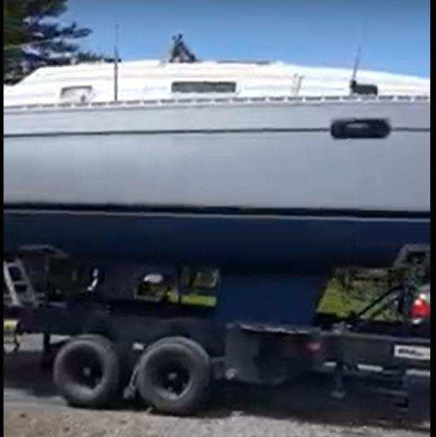 The load consists of 1x big red 28' sailboat on its trailer. It can't be towed away. It has to be on a flatbed trailer. The rest of the load consists of about 8x these stack of three boxes which are a small square boat of 50lbs each.