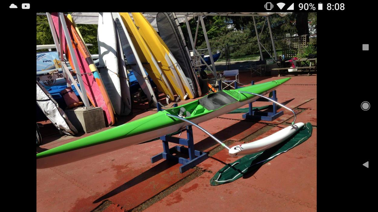 The mast is currently across the top of the boat diagonally and is 23' long. It can be separated from the boat if required