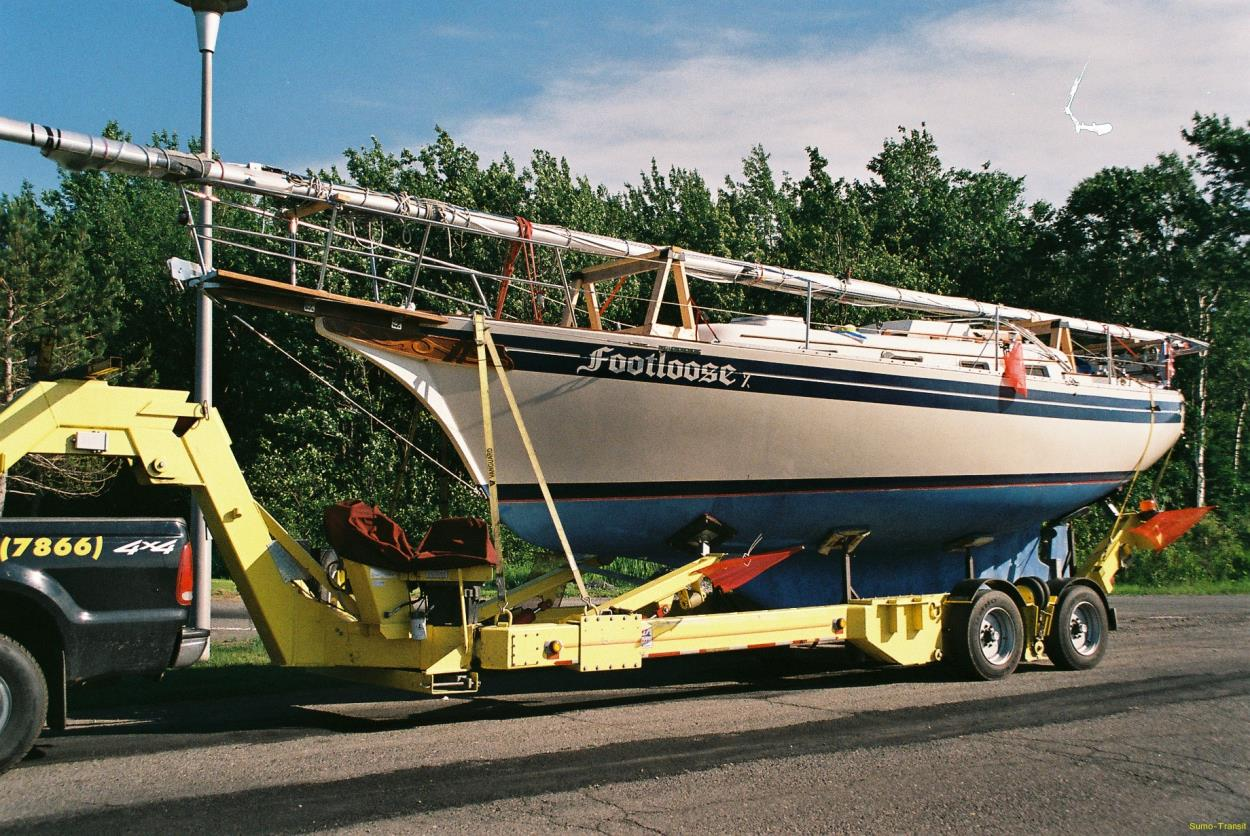 The boat is actually on is cradle and will have to be transported with it. The mast is measuring around 37 ft and will be fixed on the boat with supports please see pictures attached. We will need an hydraulic trailer. This picture is an example only (it is the exact same boat).