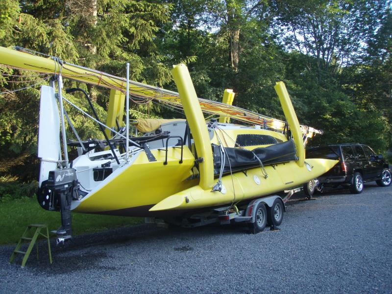 The boat will be in travel-wrap to protect it. It can be towed (as it will be on the boat-trailer) or it can be put up on a flat deck or van if the sizes are ok. The 4' height is the boat alone... on trailer it is of course higher. Maybe 7'. Any questions, please ask. (Todd)