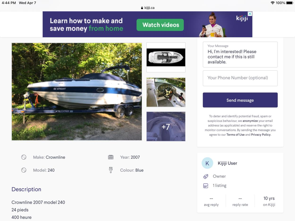 Boat located north of Detroit in Exeter, Ontario, Canada. Going to Vancouver, BC, Canada. On Cradle. Loading crane available at p/up and destination.
