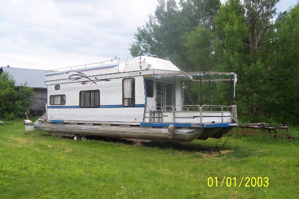 38ft by 10 ft house boat, aluminum 3 pontoon boat, on blocks from near ottawa to haliburton 4 hr drive