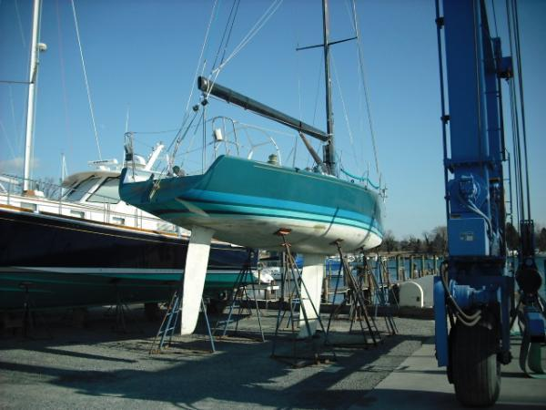 No trailer or cradle, but boatstands. My "height" of the boat is an estimate, based on 5.5 ft of draft. Sales agent is in Chester, NS, potential new owner is in Victoria, BC. Currently out of the water. Looking for quotes.