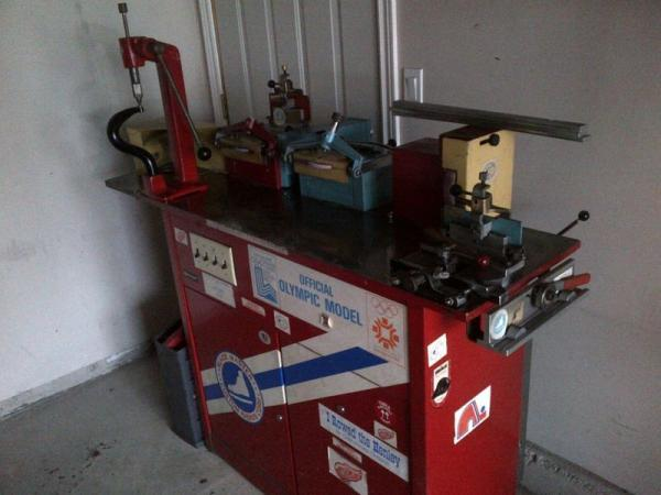 Unit is currently stored in a garage. Accessories will be boxed or wrapped. There are two small steel tables included for mounting the skate riveter to(riveter does not sit on the bench as shown in the picture on the front left corner).