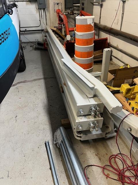 Item is an aircraft lift that has been disassembled and ready for transport. Open trailer would be easiest for loading. There is a forklift on site to assist with loading. The individual beams are 174lb - 350lb each. Small parts (fasteners, brackets, etc) are individual pieces. Forklift and tractor available for offloading.