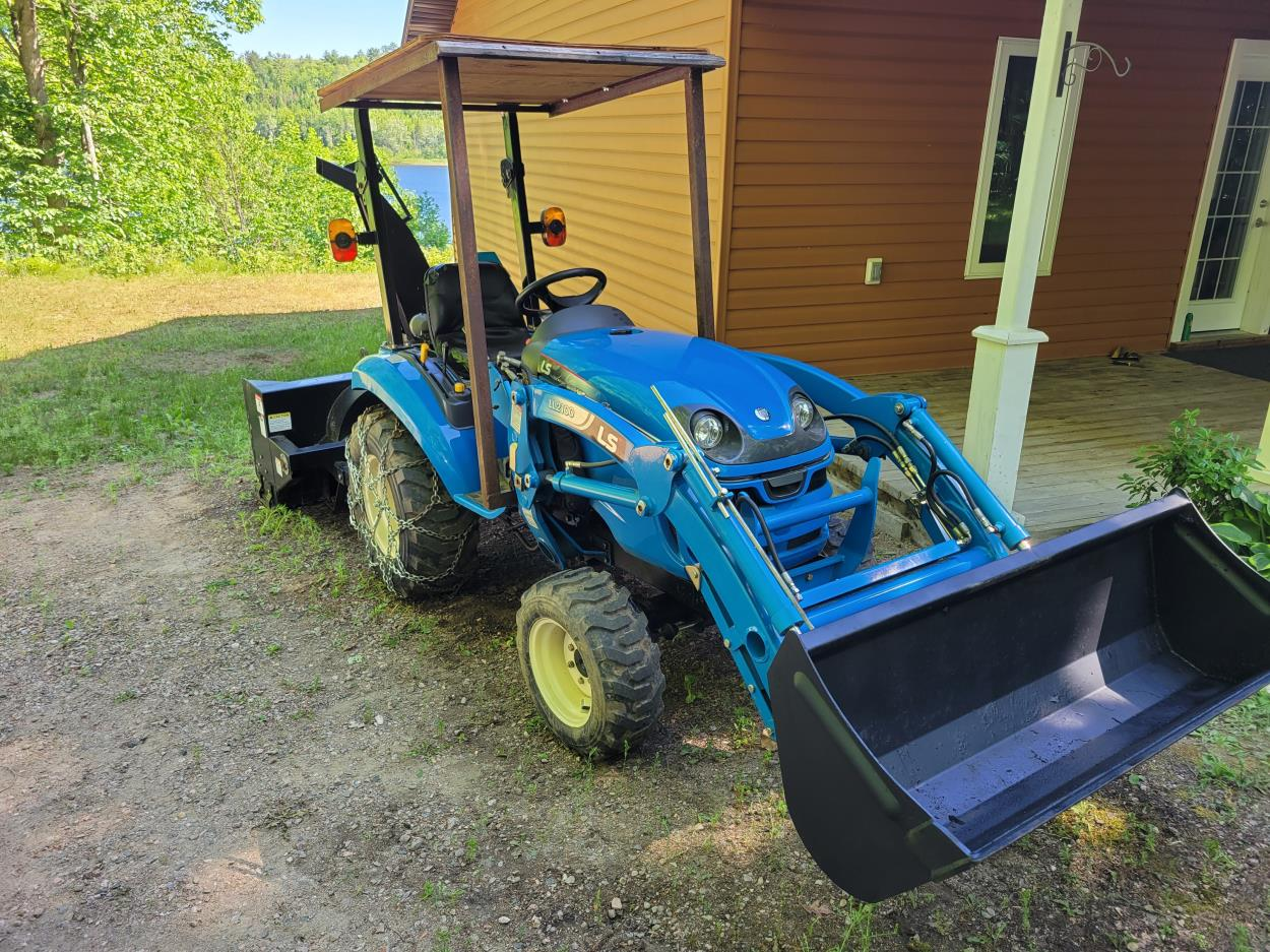 Dozer blade for a front wheel assist tractor, not very heavy, mounts also, loading and unloading provided
