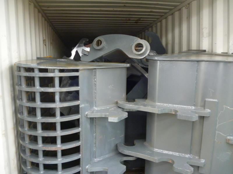 6 buckets, 5 rakes, 6 rippers, 11 thumbs, 3 quick change couplers. about 12 tons in total.