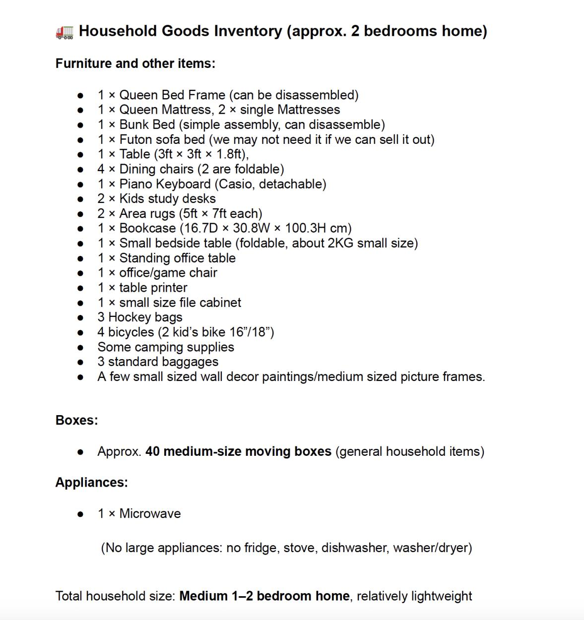 2 Bedroom House Moving Services