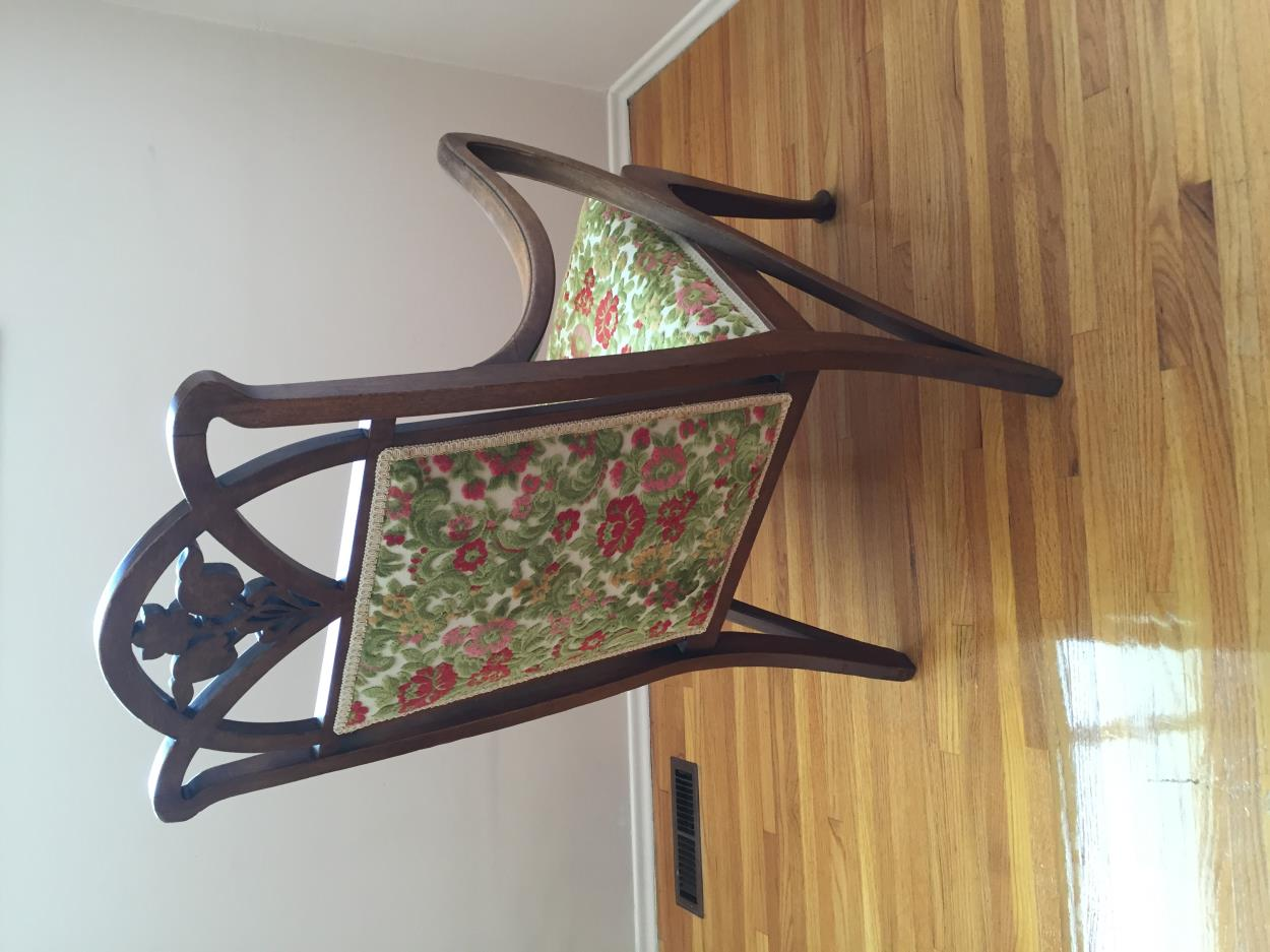 Antique piano with a dark wood finish. Piano is on castor wheels.