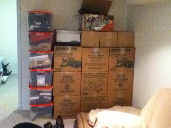 It's just one room with personal items all packed in boxes. I have only a twin size mattress and a desktop from Ikea (med. size).