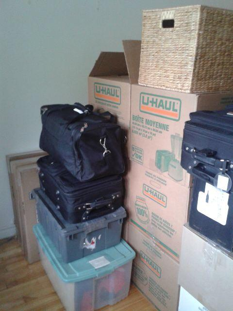 25-30 medium boxes, 4 big boxes, 2 totes, 1 rolled-up medium rug, 2 rolled-up foam mattresses (single & double).
