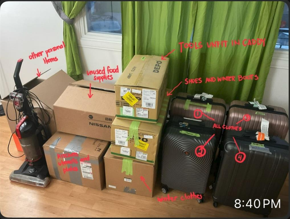 Move a flat packed Ikea Kitchen, 600 sqft of hardwood flooring, 1 stove, 1 fridge, 1 wine fridge.4 prebuilt cabinets. All would fit in 1 cube van or trailer