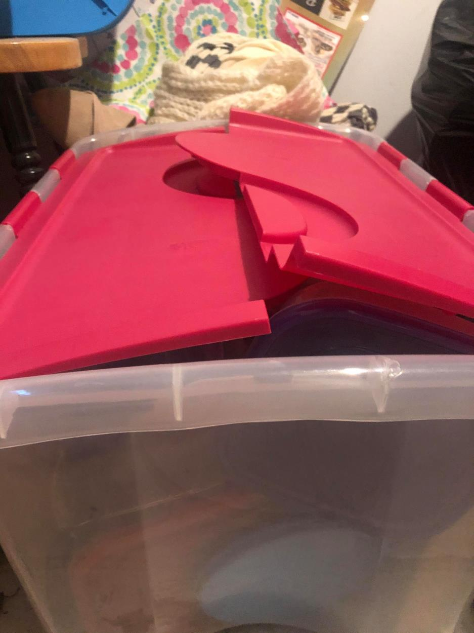 2 boxes 22 x 16 x 13 (picture enclosed - clear box with pink top)