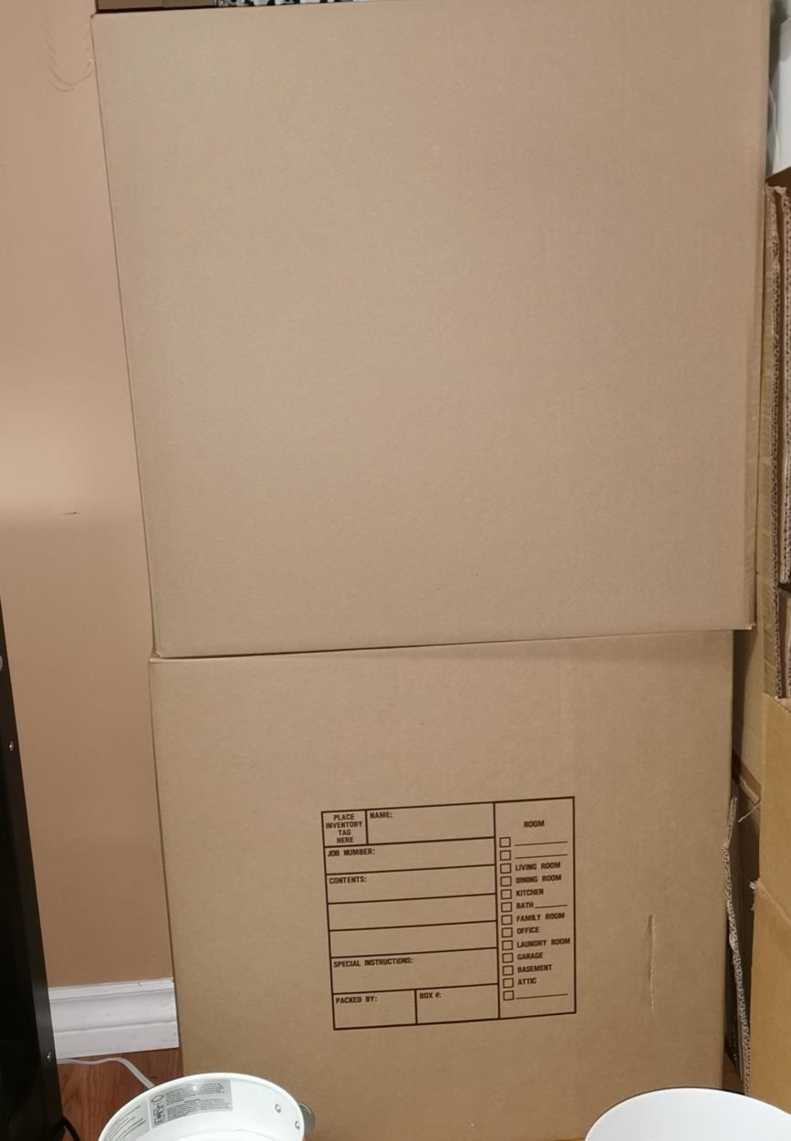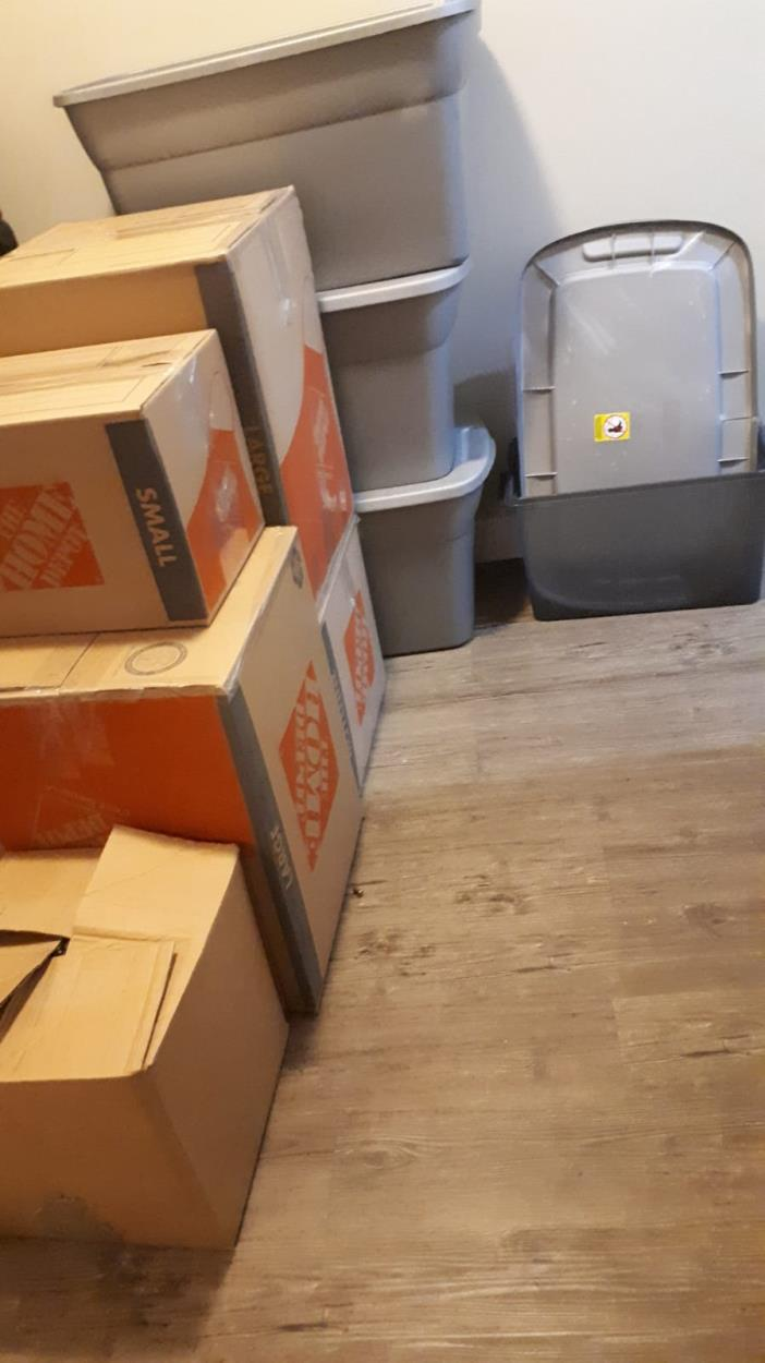 1 xL box of shoes, 1 xL box of clothes, 3 Large boxes of clothes and shoes, 3 medium boxes of clothes and shoes.