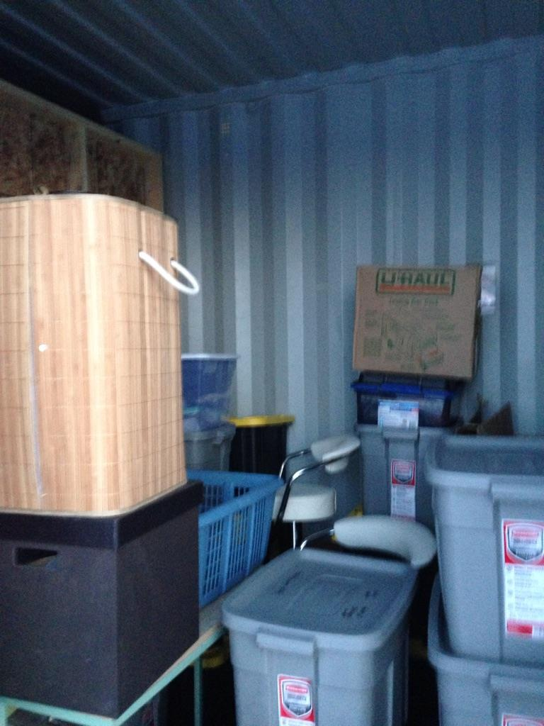 Mostly boxes and tote, tools chest, set of tires, bike, one chair, storage unit is not full. Flexible on delivery date