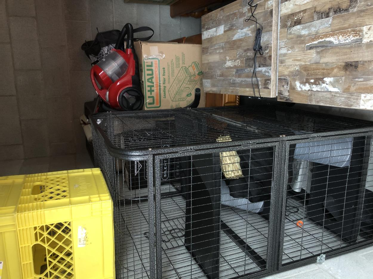Medium critter cage.. cabinet... two end tables and a coffee table.. sofa table with glass top... boxes.. few medium haul and assorted small boxes. Vacuum cleaner... no bed.. that was sold and no grey night tables, those were also sold.