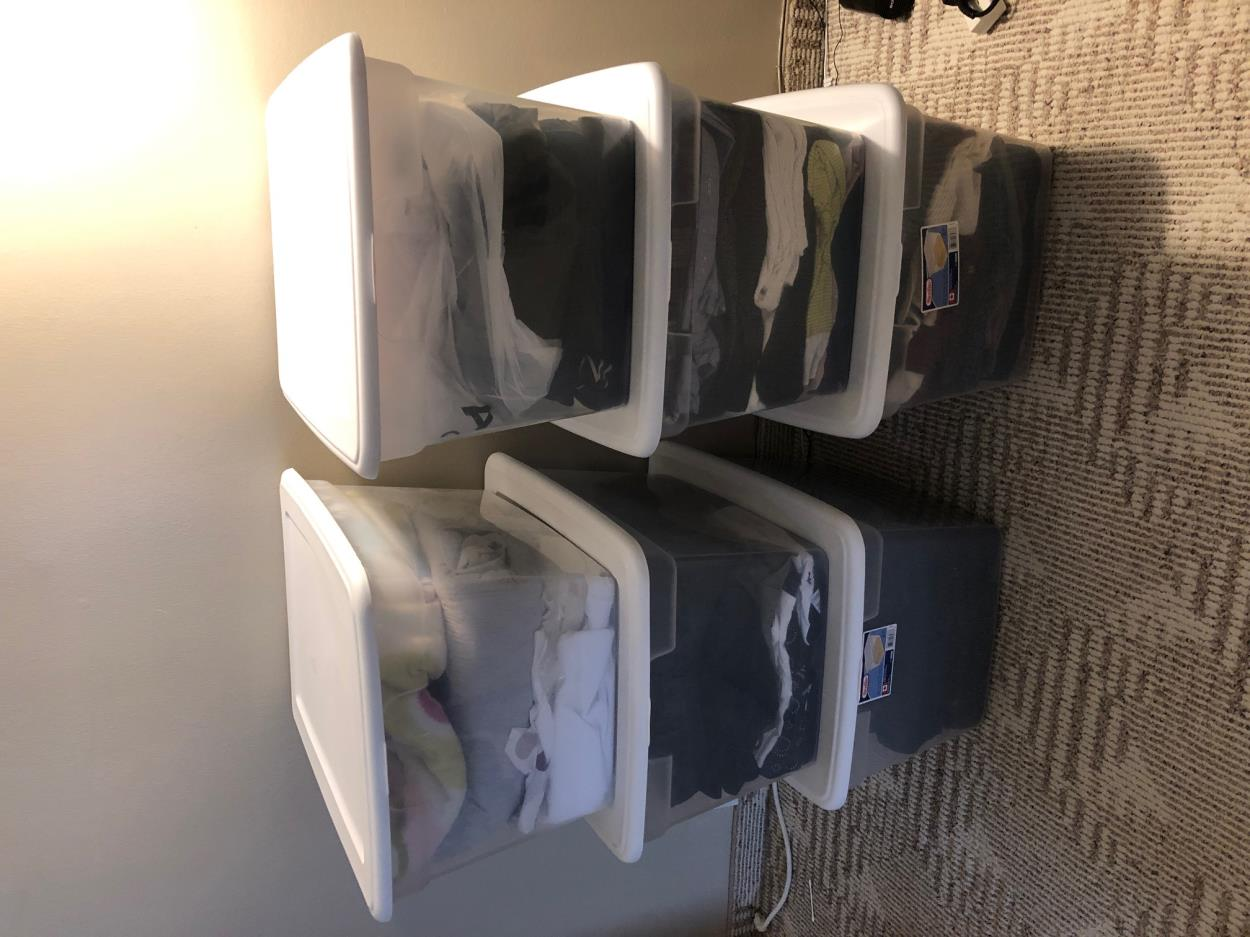 I'm taking 6 rubbermaid totes. Some are slightly bigger than others.