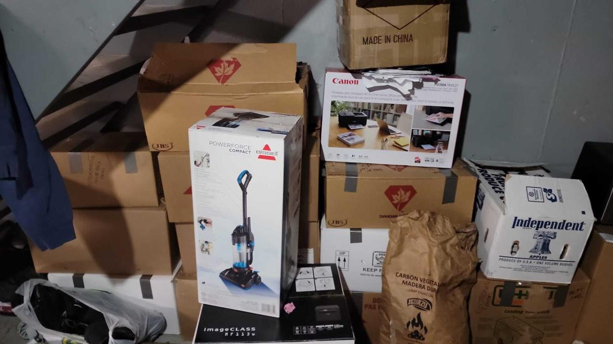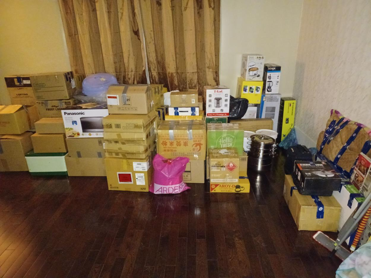To describe better of what things are there 2 printers in box. Medium boxes with clothes and kitchen stuff x14, vacuum cleaner.