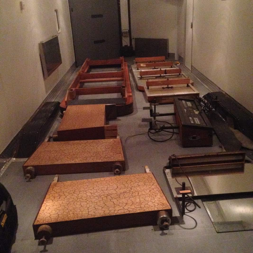 The shuffleboard table is dismantled and can be stacked and moved in whatever way is the easiest.