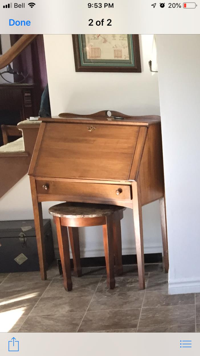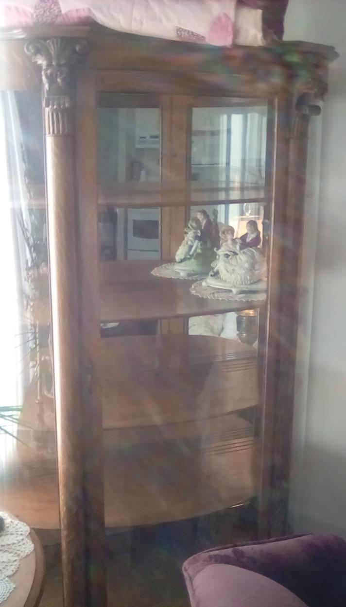 Antique china hutch, small buffet table, small desk and dining table with 4 chairs. Pictured above: 1. small desk, 2. China Hutch and 3. Dining table/chairs. Not pictured: small buffet table.