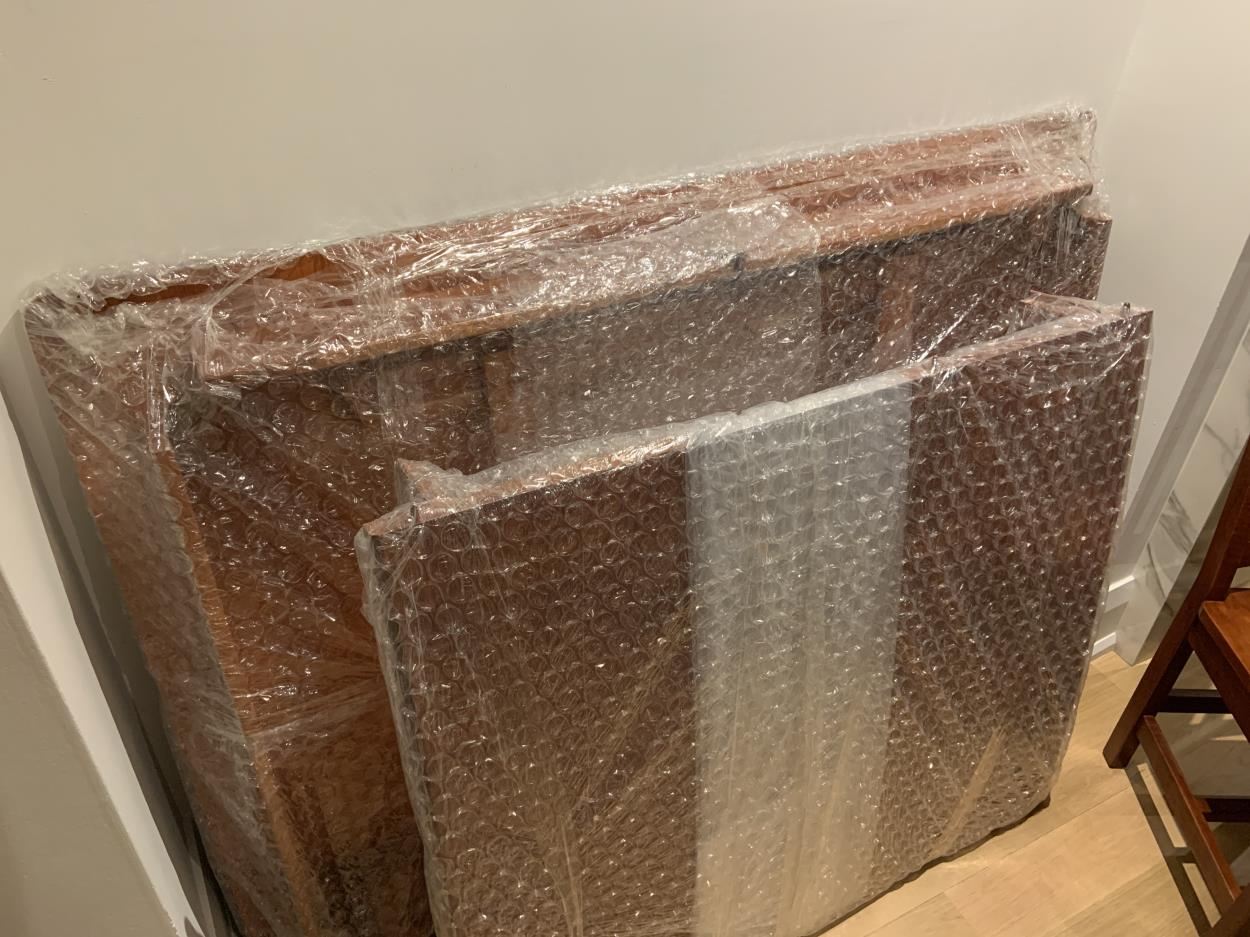 Table is wrapped flat in bubble wrap in 2 flat pieces approx 10” depth each.