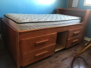 The captains bed has been taken apart so it will be easier to transport. The book shelf normally sits on top of the desk... we have taken it off for easier transport. All furniture has been wrapped with plastic wrap. The furniture has been relocated beside the front door (ground floor) beside the driveway for easy pickup.