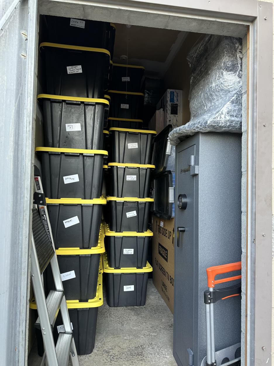 there are about 25 of these totes you see in the photo. The totes weigh about 15 pounds each. Some are 25ibs. A couple are 50ibs. plus a smaller GUN safe, a 60" tv box, plus misc 3 or 4 more boxes.a couple of trolleys.