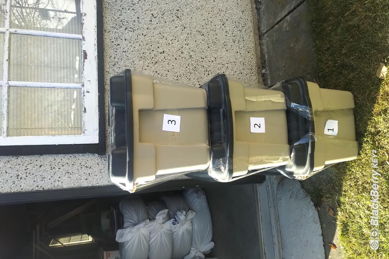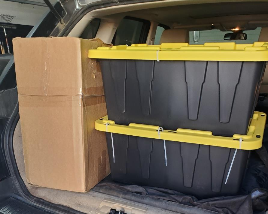 3 Bins of decorations. I can drop off if that makes it easier