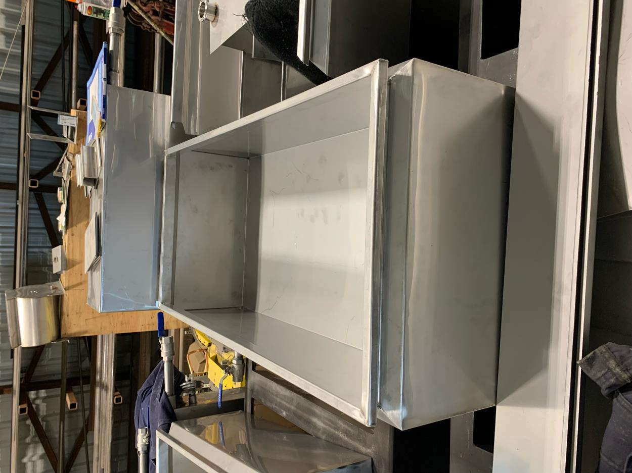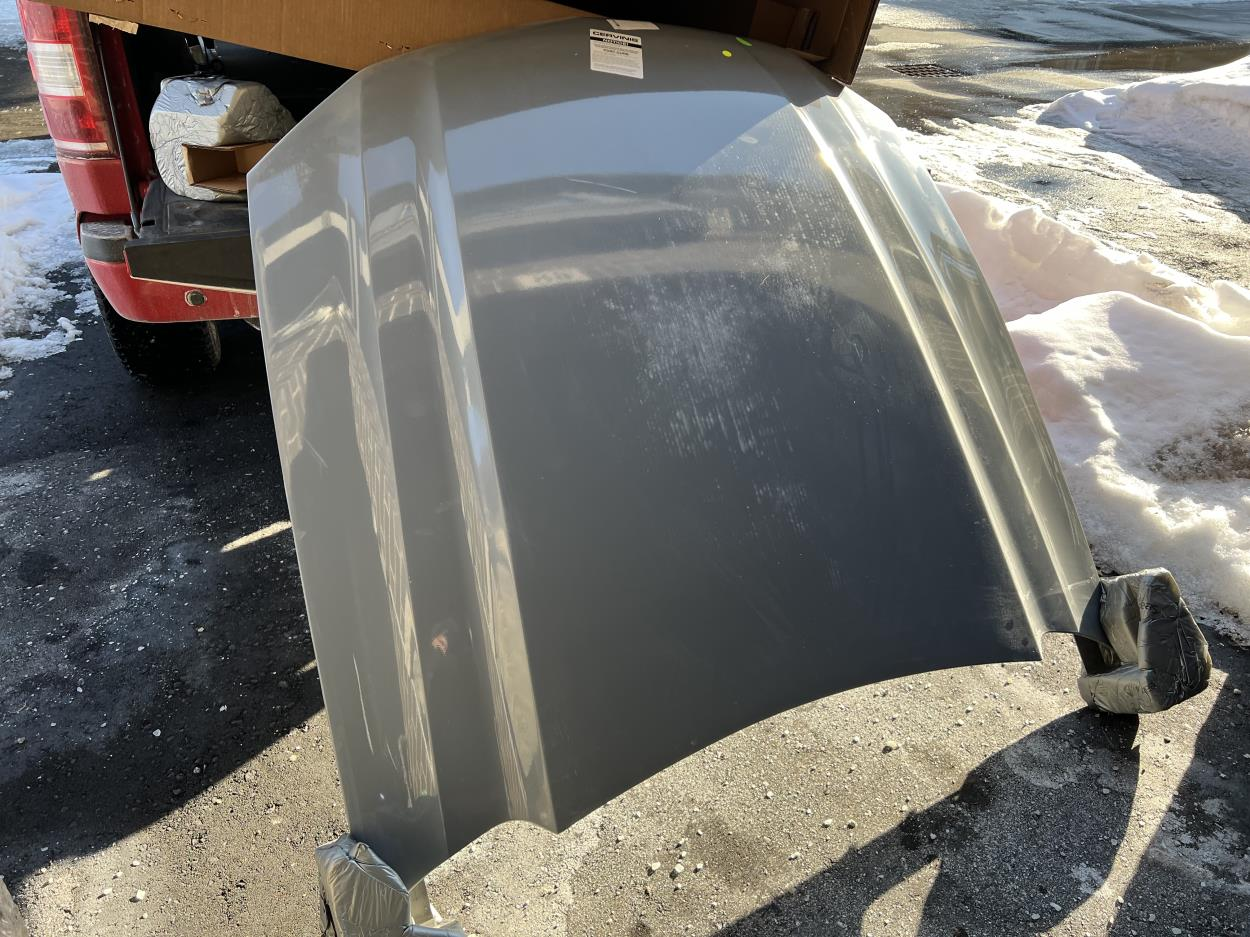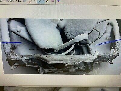 Front end of a car shell. The blue lines in the photo is where the shell would be cut from the rest of the vehicle.